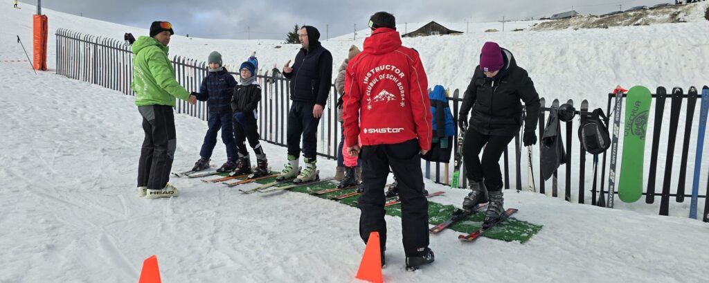 Cursuri de schi pentru copii și adulți, adaptate fiecărui nivel, într-un mediu sigur și prietenos, alături de monitori autorizați.